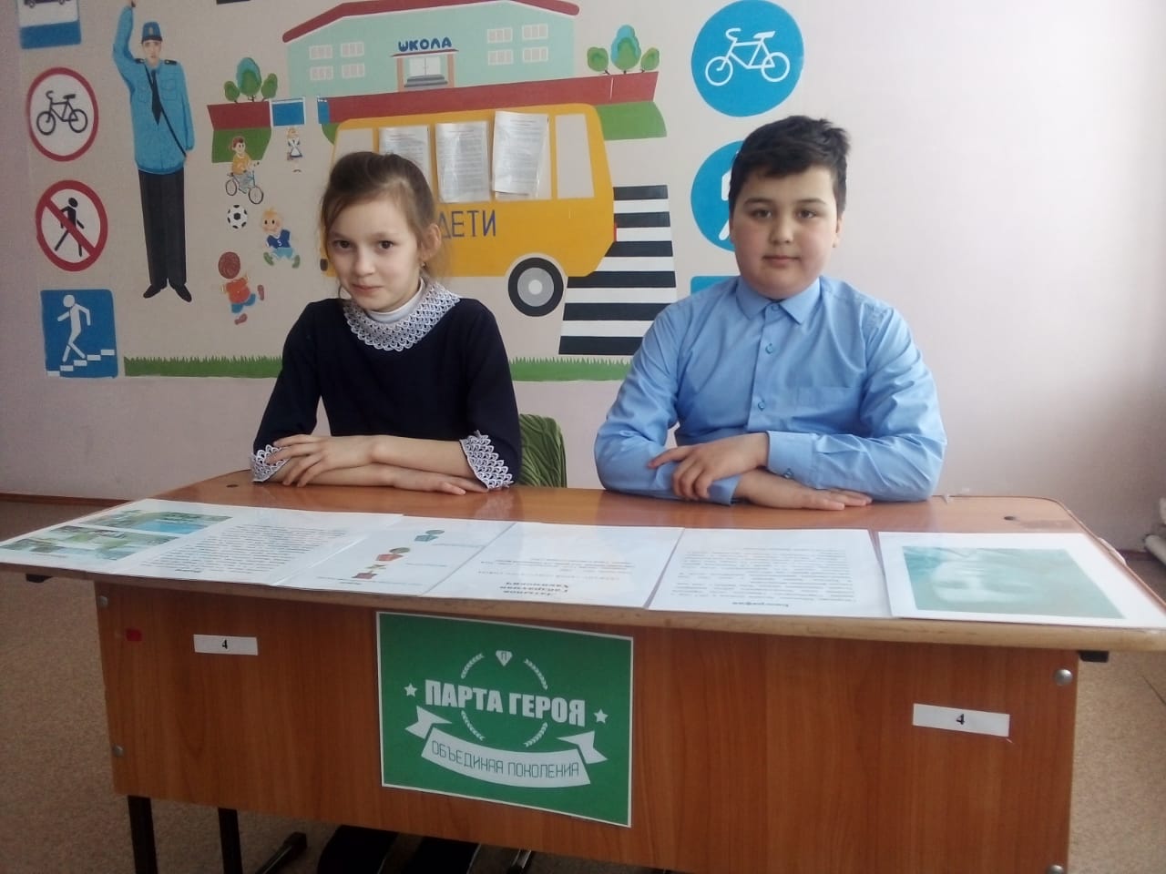 Наша школа присоединилась к Всероссийскому образовательному проекту. «Парта Героя» — это ученический стол, на котором размещена фотография Героя, информация о фактах его биографии и заслугах. Право сидеть за Партой Героя присуждается учащимся за отличные оценки, а также за активную общественную работу по итогам четверти. В нашей школе оборудовано 2 парты: один из них посвящен Ковалеру Ордена Красной Звезды Баймурзину А.М., а другой- Герою Советского Союза Г.Х. Латыпову. Это акция воспитывает чувство патриотизма и гордость подрастающего поколения.