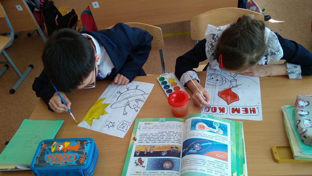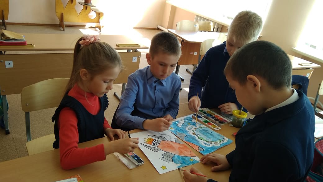 Завершилось мероприятие совместным изготовлением плаката «Космический корабль».