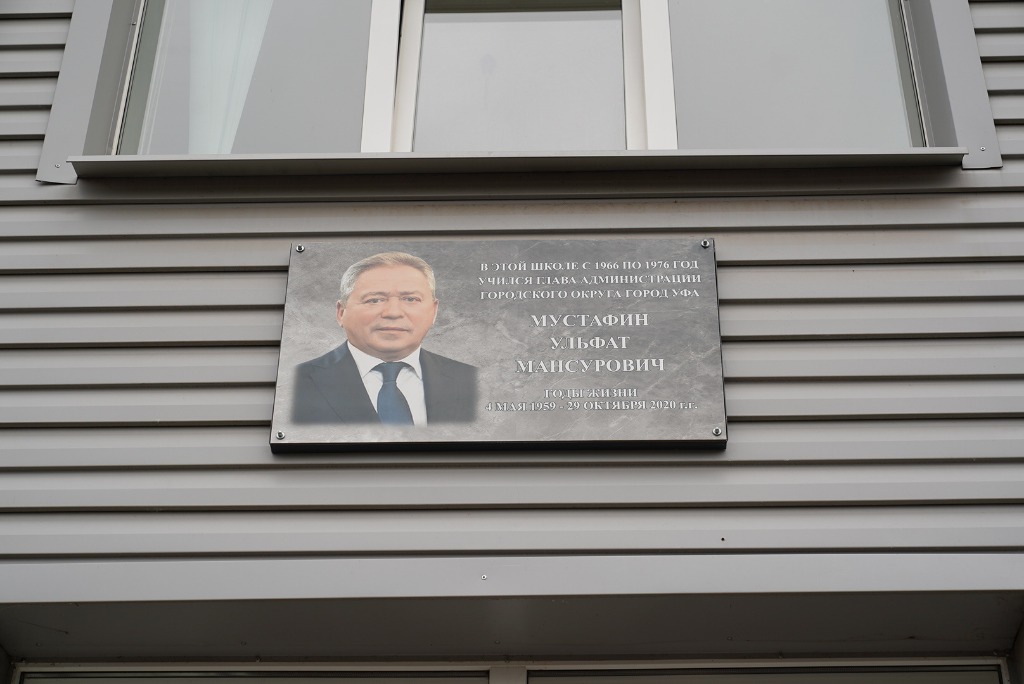 На открытие доски приехала мама Ульфата Мустафина Миляуша Мухаматшариповна, которая поблагодарила Главу республики и пожелала ему успехов в работе. Так же на открытии выступили классный руководитель Миляуша Гильмутдинова и одноклассник Ринат Бикмухаметов.