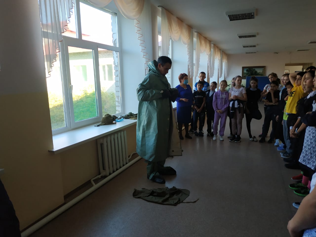 4 октября- день гражданской обороны в России. В рамках этого дня был проведен открытый урок для учащихся 5-9 классов. Учителем ОБЖ было проведено практическое мероприятие по надеванию индивидуальных средств защиты - противогаза и ОЗК ( общевойскового защитного комплекта).