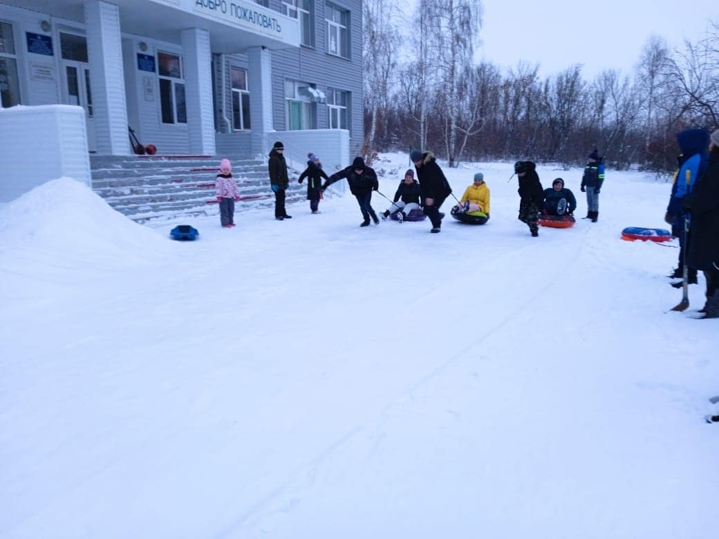 Родители и дети с радостью приняли участие в эстафете на санках и тюбингах, виртуозно справлялись с клюшкой и мячиком.