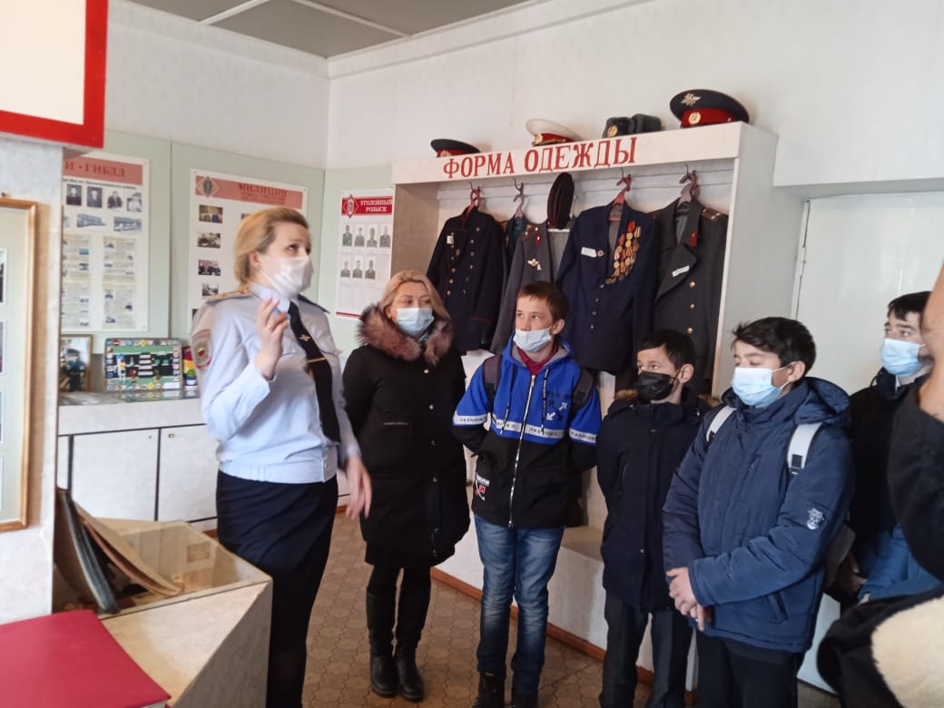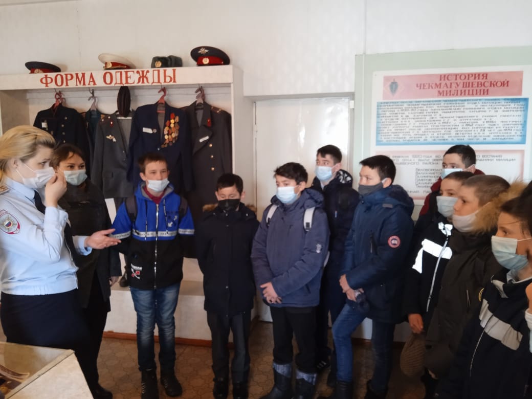 С целью снижения криминогенной активности несовершеннолетних, профилактики правонарушений, совершаемых с участием несовершеннолетних, в том числе состоящих на учете в ОВД, а также формирования у подростков законопослушного поведения 24.03. 21 учащиеся 7 класса МБОУ СОШ с. Старобаширово вместе с завучем по ВР Макуловой Р.Р. и специалистом отдела образования Имангуловой Г.Т. посетили музей МВД Чекмагушевского района. Инспектор по делам несовершеннолетних Бакиева Г.В. провела экскурсию по музею и рассказала об ответственности несовершеннолетних за совершение правонарушений.